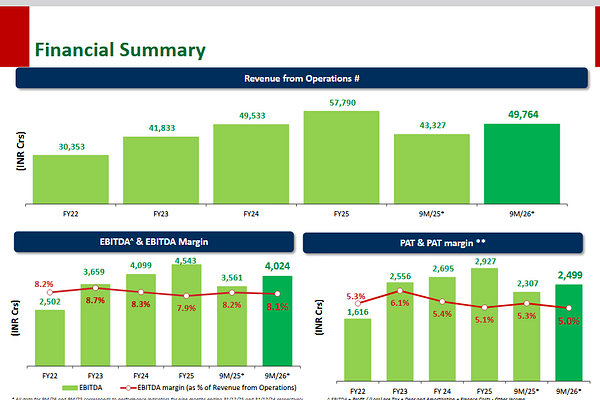 FY26 guidance of 25% growth. Strong tailwinds, order book, capex & backward integration support growth. Fully priced in the short term. Long-term…