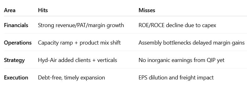 Execution Risk: Bellows certification or volume delays may defer ₹85–90 Cr revenue.
