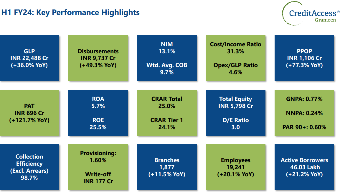 CreditAccess Grameen: 122% PAT growth & 54% income growth in H1-24 at a PE of 20