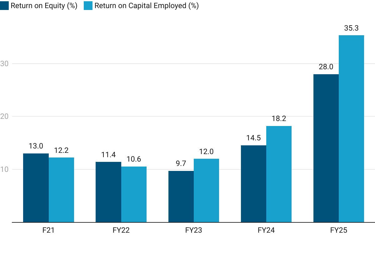 Margin Outperformance: H1 FY26 EBITDA margin of 27% is already above the guided 21–23% range during the Q1 FY26 call.