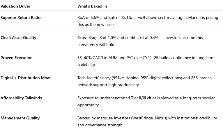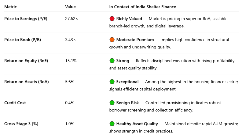 The market sees India Shelter as a structural compounder — not a cyclical lender — and is willing to pay up for predictable growth and clean risk management.