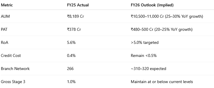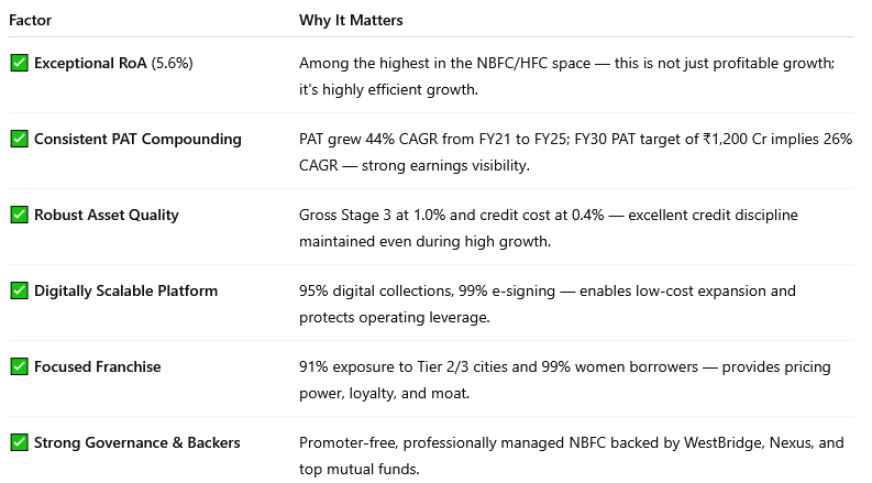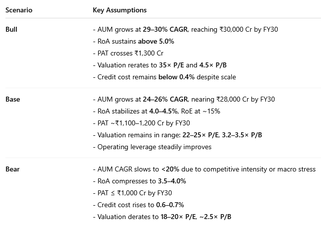 Visibility to ₹1,200 Cr PAT by FY30: Management’s AUM and RoA targets are realistic based on historic execution.