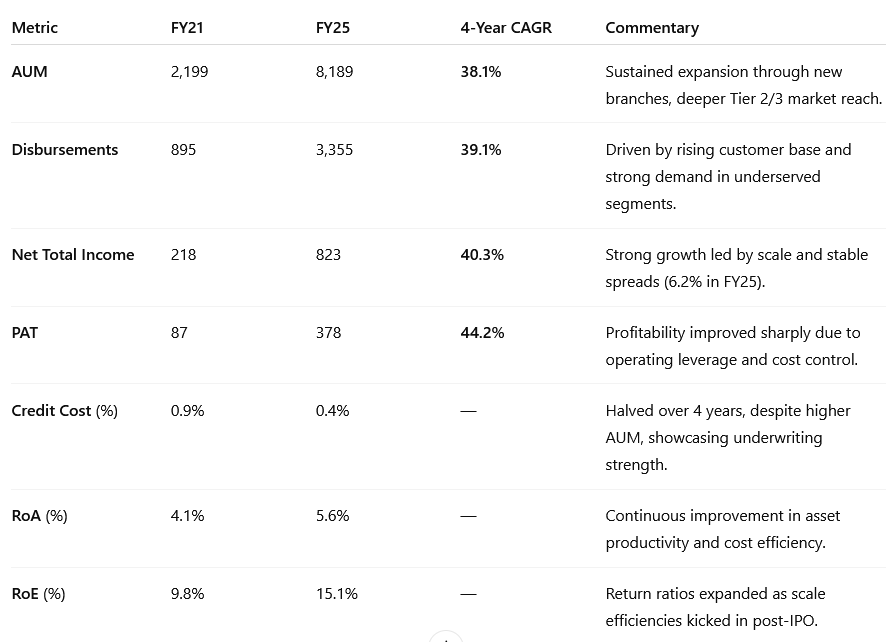 India Shelter's FY21–FY25 performance reflects a high-quality growth story with superior earnings momentum, prudent risk management, and scalable operations.