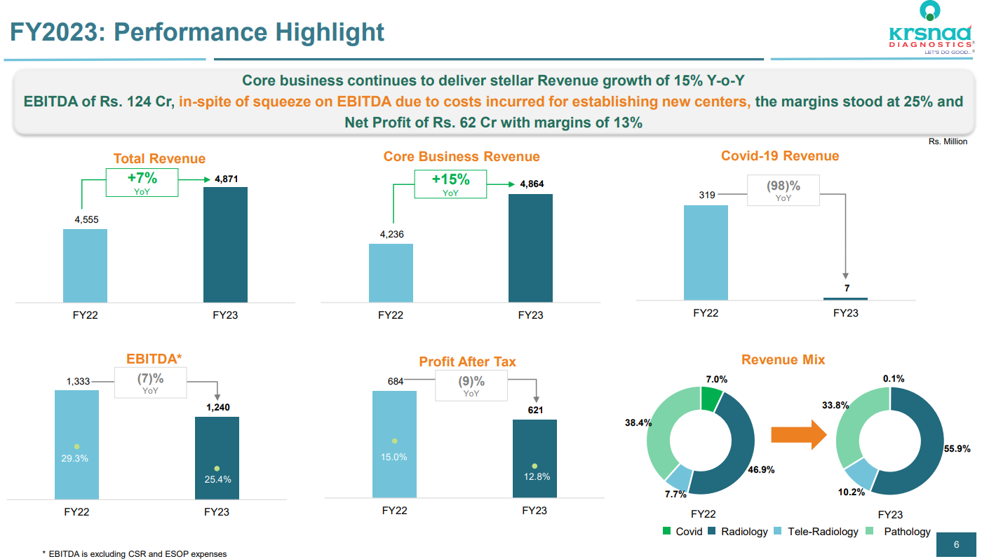 5%. Additionally, we reported a Net Profit of Rs. 62 crores, with a margin of 13%. While recognizing our achievements, it is important to acknowledge that our margins were impacted during FY23 due to the necessary costs associated with establishing new centers.