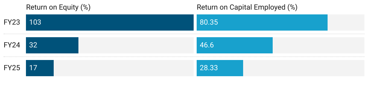 Funds from IPO in FY24 followed funds through Preferential issue in FY25 muted returns