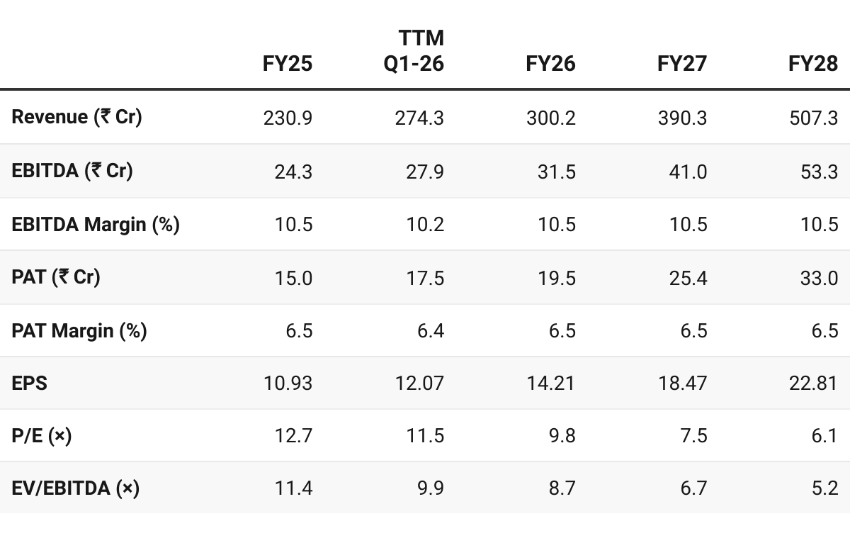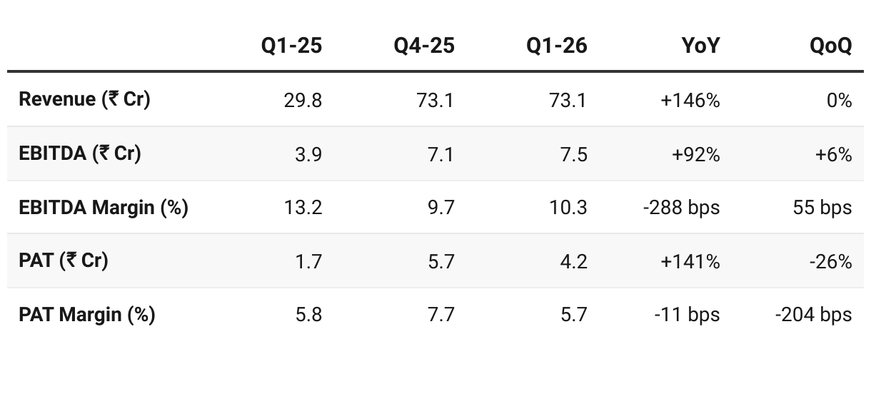 Q1 FY26 revenue was ₹75 Cr, in-line with ₹75 Cr/quarter run-rate needed for 30% growth.