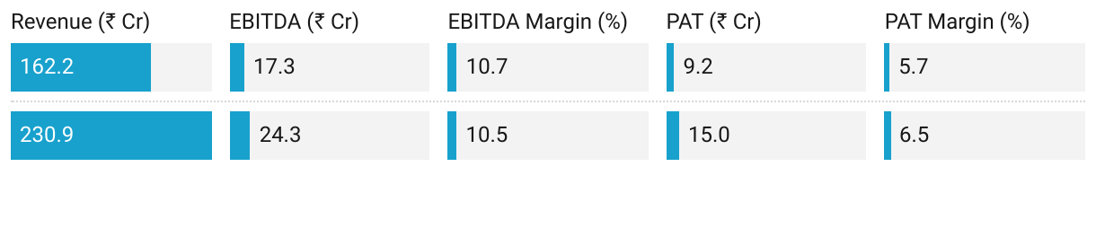 Strong Margins: EBITDA margin in-line with guidance range (10–11%).