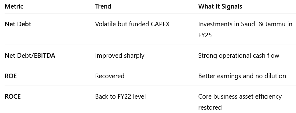 Net Debt: Volatile but funded CAPEX Investments in Saudi & Jammu in FY25