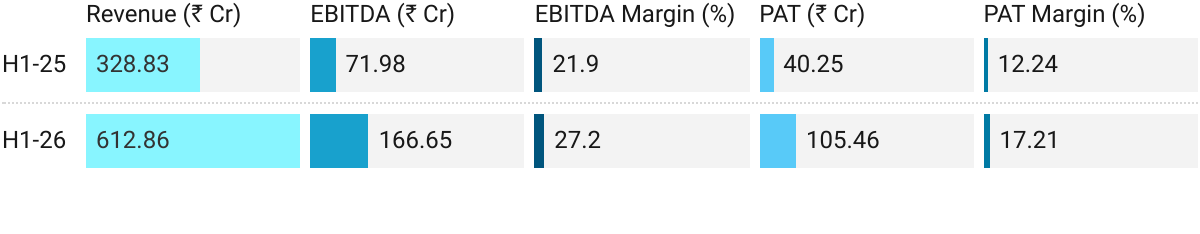 ₹613 Cr in H1 implies a full-year run rate of ₹1,225 Cr, exceeding the revised guidance of ₹1,150 Cr+.