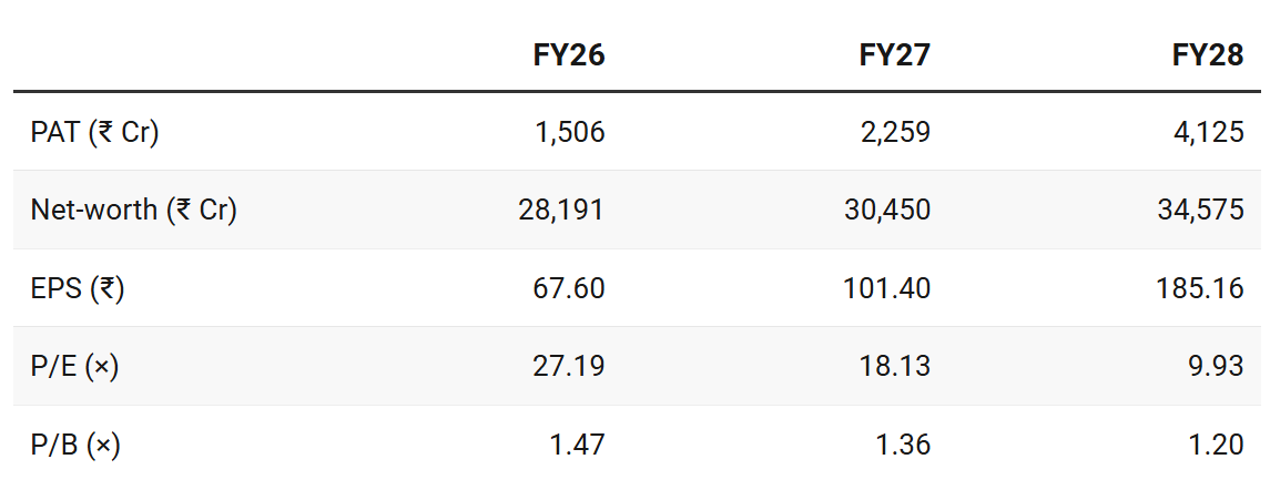 For a company guiding to deliver ~66% PAT CAGR for FY26-28 — the P/B multiple deserves a re-rating closer to 2 P/B (×)