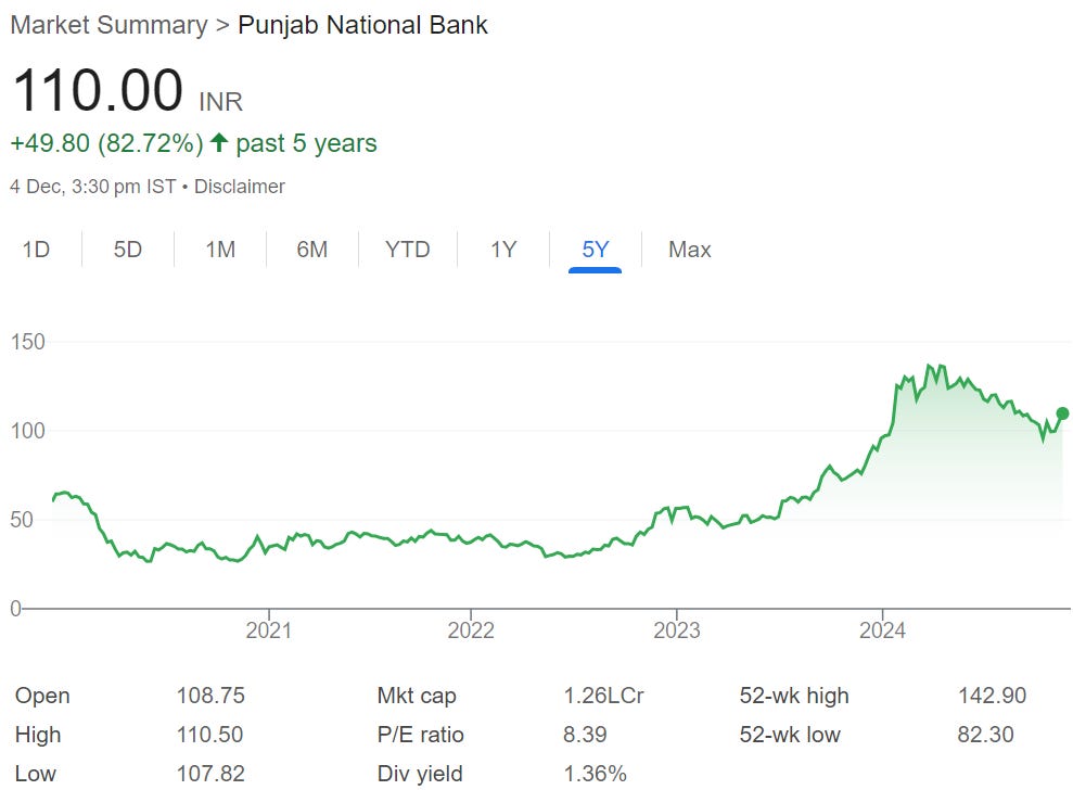 Punjab National Bank: PAT growth of 151% & Net Interest Income growth of 8% in H1-25 at a PE of 8