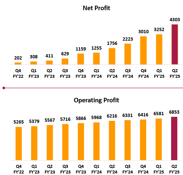 PNB is in the middle of a very strong run. It has delivered sequential growth in PAT on QoQ in all the 4 quarters of FY23 and FY24. The trend continues in Q2-25