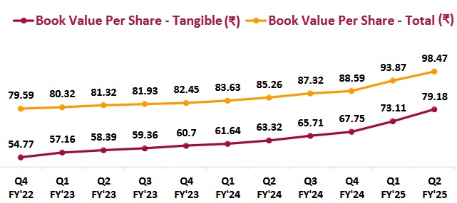 With a tangible book value of Rs 79.11 against a current price of Rs 110 as of Q2-25 end implies that PNB is available a price to book of 1.39 which makes the valuations reasonable