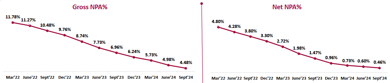 PNB has revised its guidance for GNPA of below 5% to 3.5-3.75% and NNPA below 0.5% in FY25. However, one needs to keep a watch on asset quality given that NPA has been a severe problem in the past