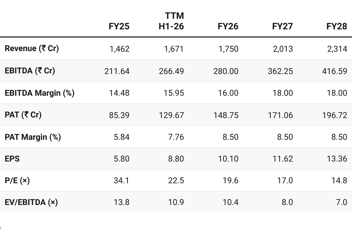 Re-rating potential: At ~19× FY26E P/E and 10× EV/EBITDA, trades at a discount to retailers (explained by the weak performance for FY23-25). Sustained execution as per guidance could drive a significant re-rating and create an opportunity in the stock.
