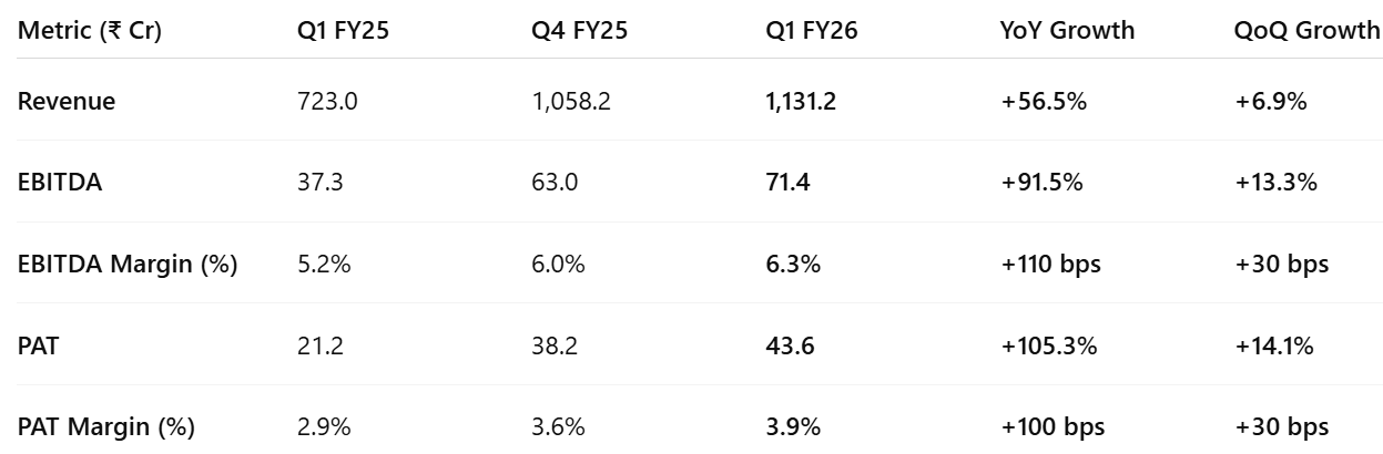 PAT margin improved to 3.9% in Q1 FY26, but execution is thin-margin and volume-sensitive.