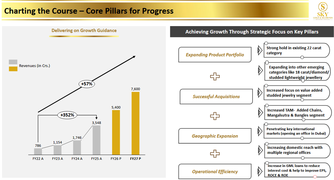 Q1 FY26 confirms that Sky Gold is scaling with discipline and speed. With strong revenue momentum, a lean cost model, and strategic levers like advanced gold and ERP in place, the company is well-positioned to hit its FY27 targets without aggressive assumptions. Execution and client ramp-up will remain critical in the next 2–3 quarters.