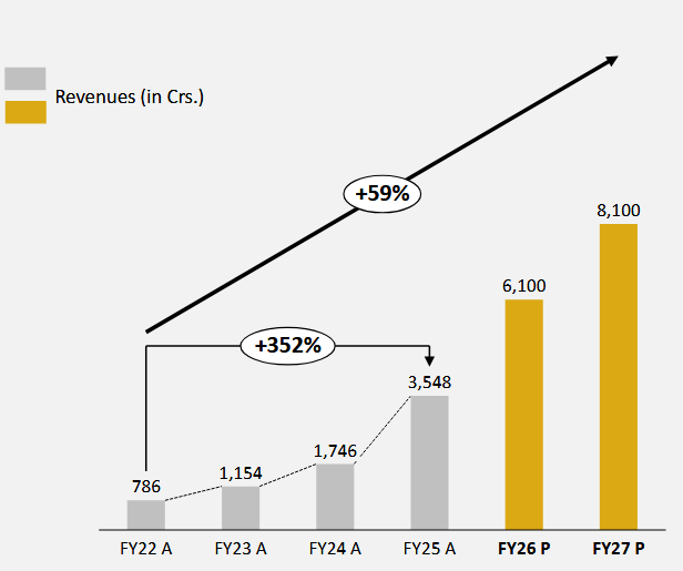 FY26/ FY27 Revenue projected at ~₹6,100/ 8,100 crore