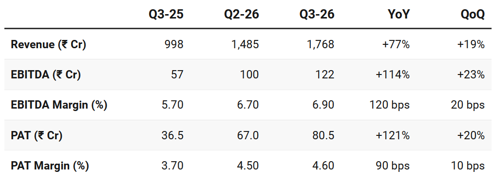 4. Q3-26: PAT up 121% & Revenue up 77% YoY