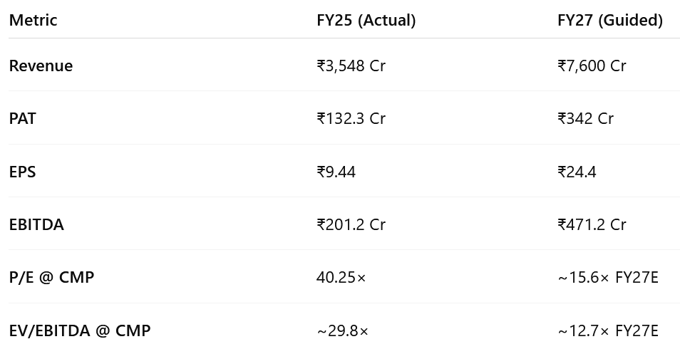 FY26–27 Visibility: ₹7,600 Cr revenue and 4.5% PAT margin by FY27 appear embedded in valuations.