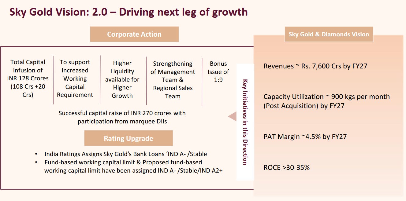 PAT Margin: Sky Gold expects to improve its PAT margin to 3.5% by reducing interest costs through increased utilization of gold metal loans (GML).