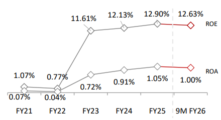 ROA for 9M FY26 stood exactly at 1.00%.