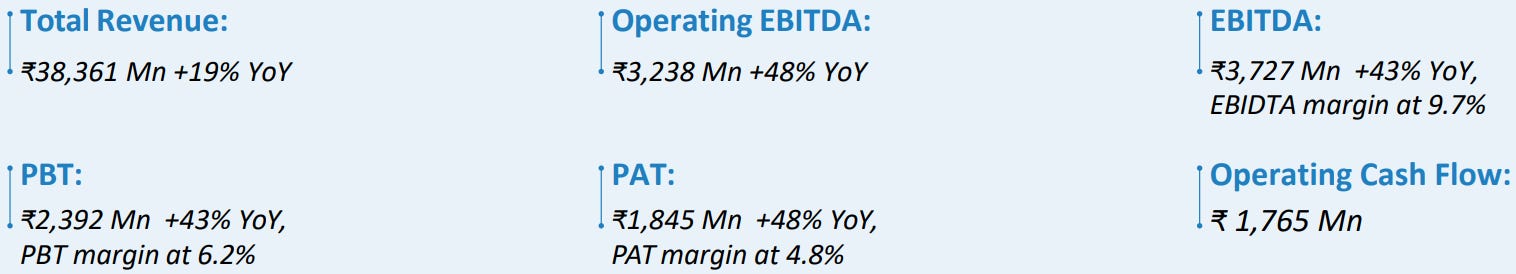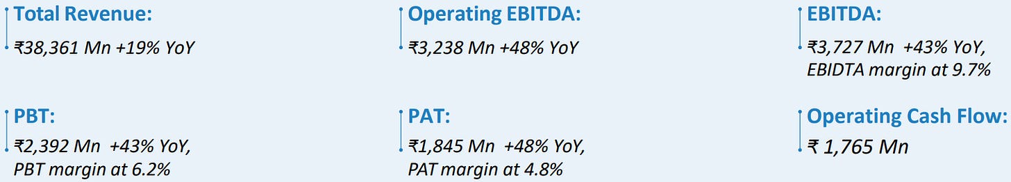 PAT margin rose to 5.2%, up 350 bps YoY.
