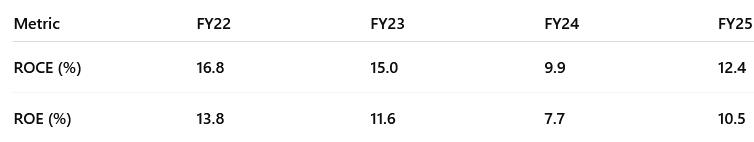 Inventory Risks Re-Emerging: Despite FY25 reduction, any surge in input stocking (especially for custom components) could weigh on ROCE.