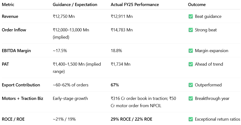 FY25 saw the first ₹50 Cr motor order and ₹316 Cr traction order book.