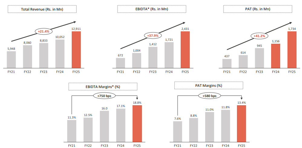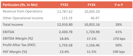 Strong FY25 execution: 28.5% ROCE, 22% ROE, and record PAT.