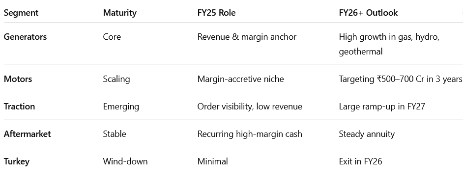 Traction motors are in the prototype-to-production phase and yet to contribute to FY26 revenue meaningfully.