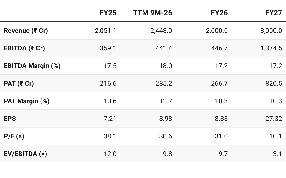 Revenue: ₹2,600 Cr — at least 25% growth over FY25.