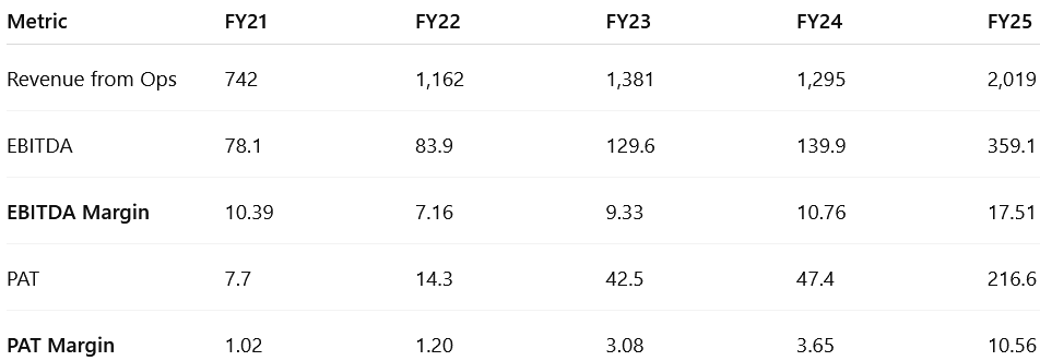 Capital infusion: ₹500 Cr via QIP in FY25 used for expansion and deleveraging (Debt/Equity dropped to 0.21).