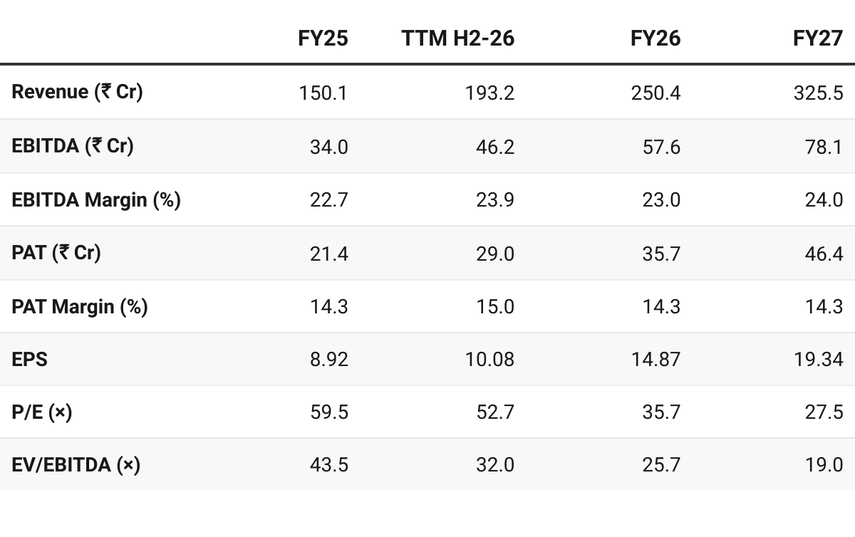 25–35% annual growth over FY26–FY27, backed by a healthy order book that already covers the next year’s revenue target.