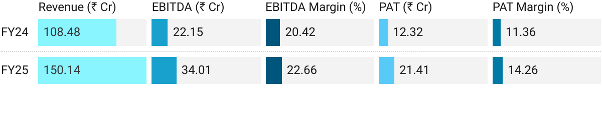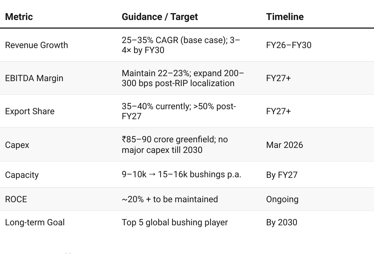 Targeting 3–4× topline growth by 2030 (~₹600 cr vs ₹152 cr FY25).